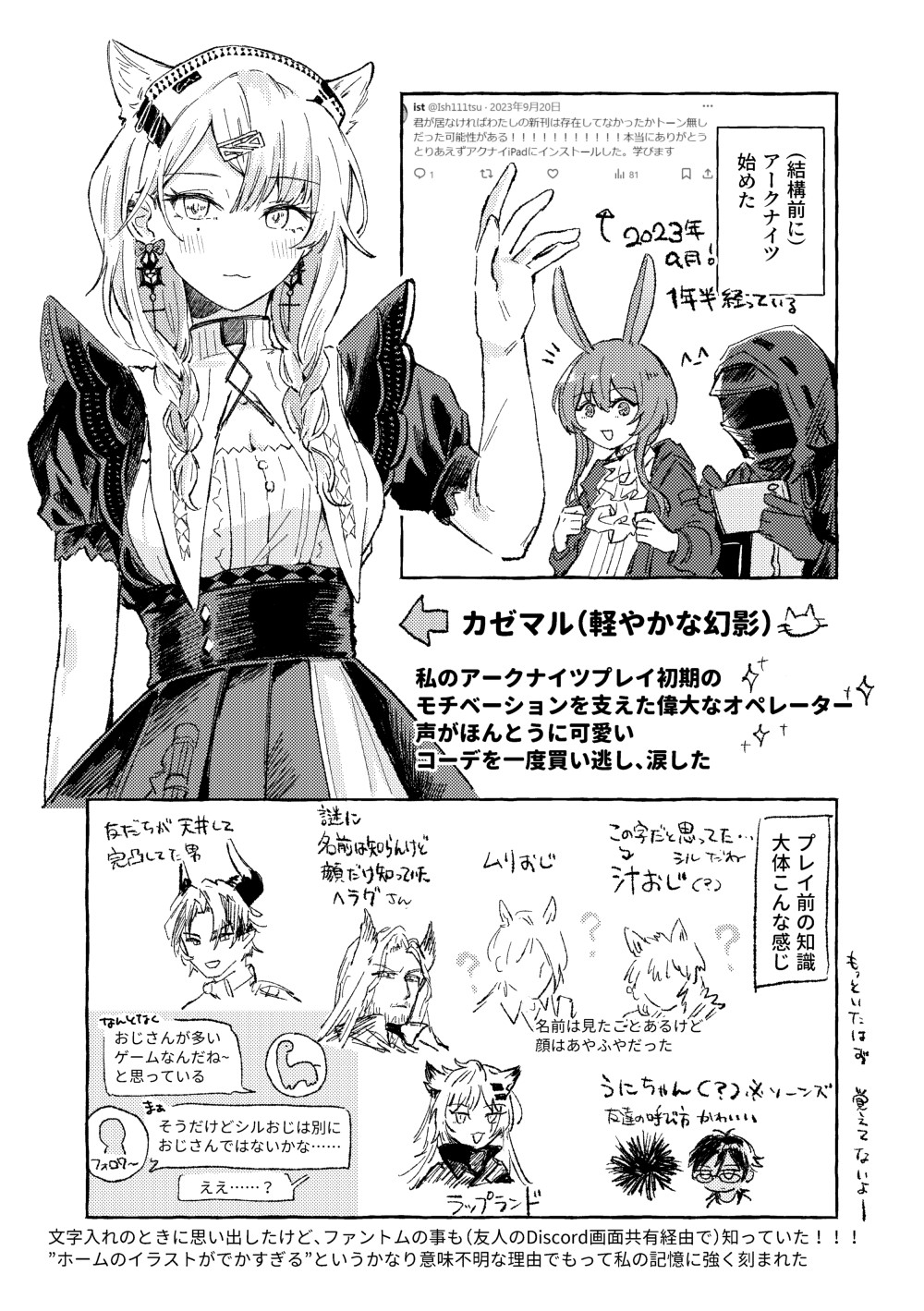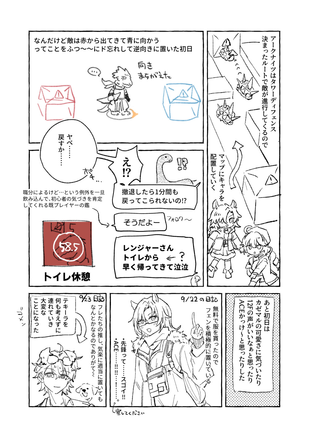 2023年9月にアークナイツを始めた。かなり今更感があるが、今からプレイ日記を遡って書(描)いてみようと思う。元々、既プレイの友人たちに向けて非公開アカウントでしょっちゅう日記を書いたり、攻略の相談に乗ってもらったりしていたので(そしてそれを何故か気に入っているらしい友人たち)、それらの記録のまとめです。
